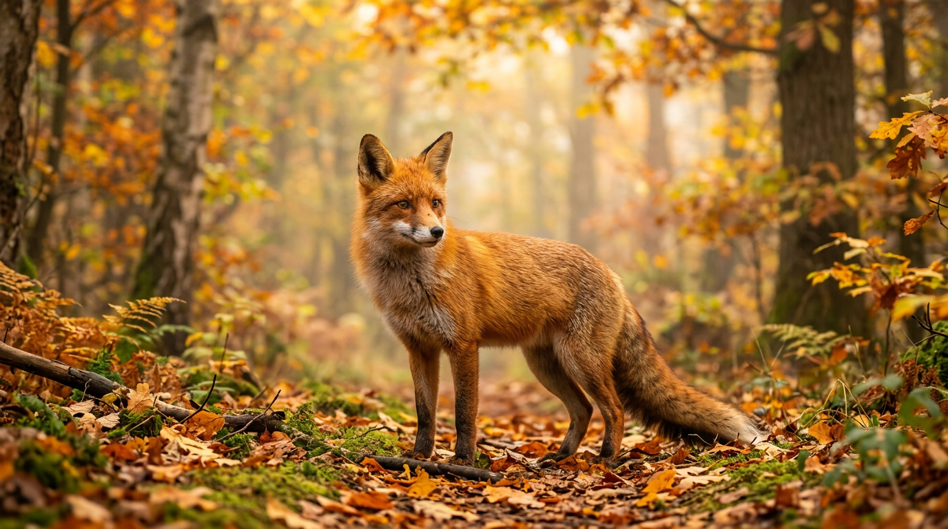 AI-generated example using the wildlife prompt above: red fox in misty autumn forest, golden hour light, National Geographic-style sharpness. → Use this prompt in ChatGPT